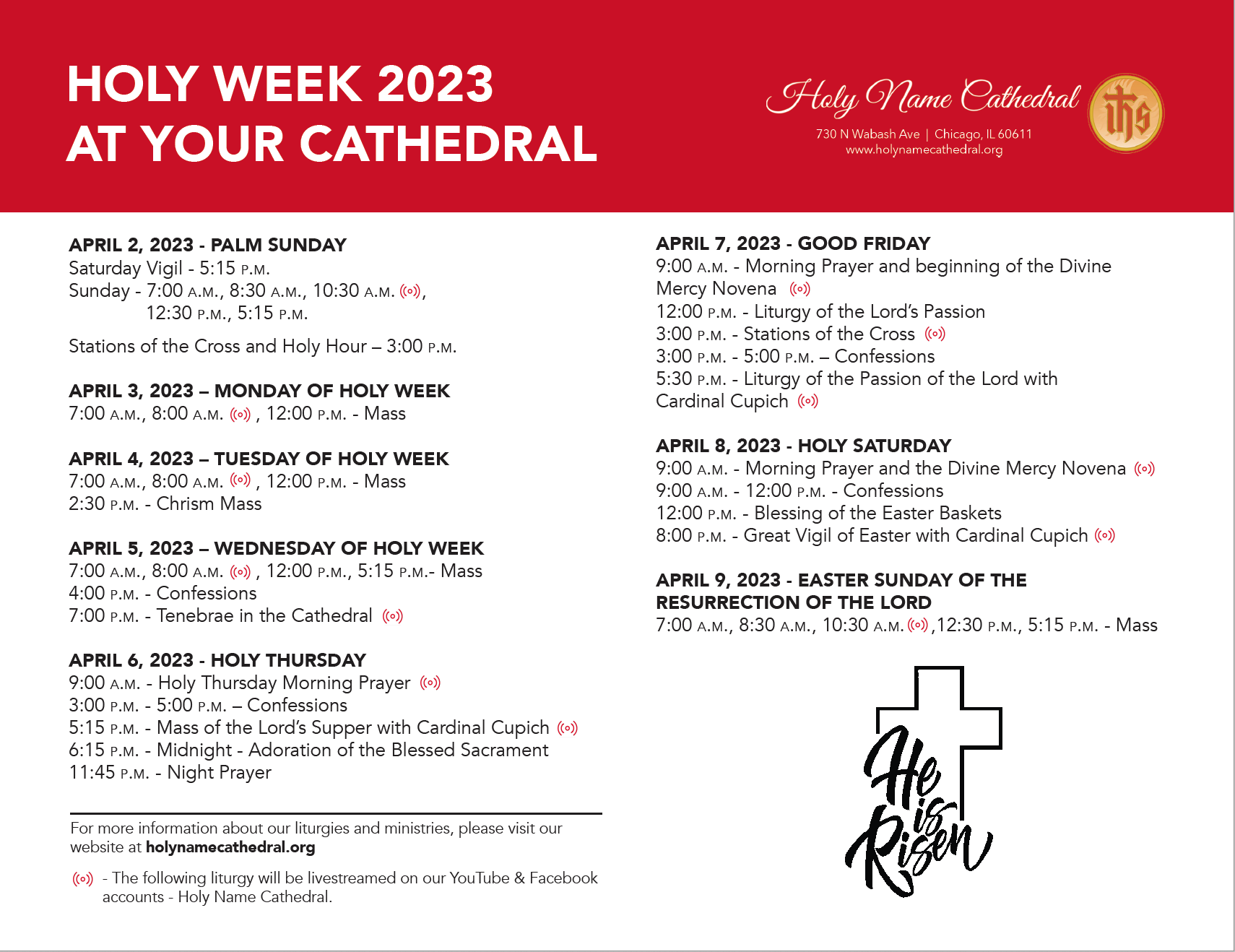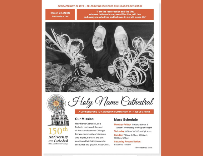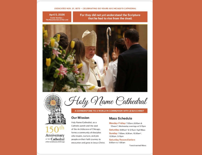Holy Name Cathedral, as a Catholic parish and the seat of the Archdiocese of Chicago, forms a community of disciples who inspire, nurture, and join people on their faith journey to encounter and grow in Jesus Christ.