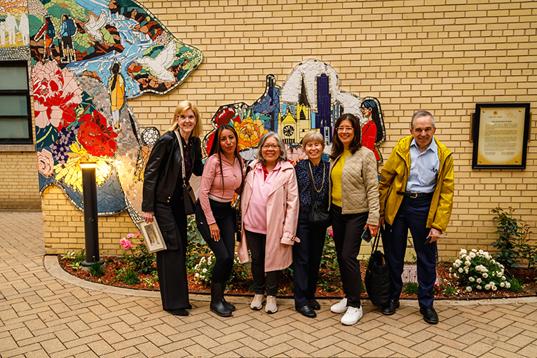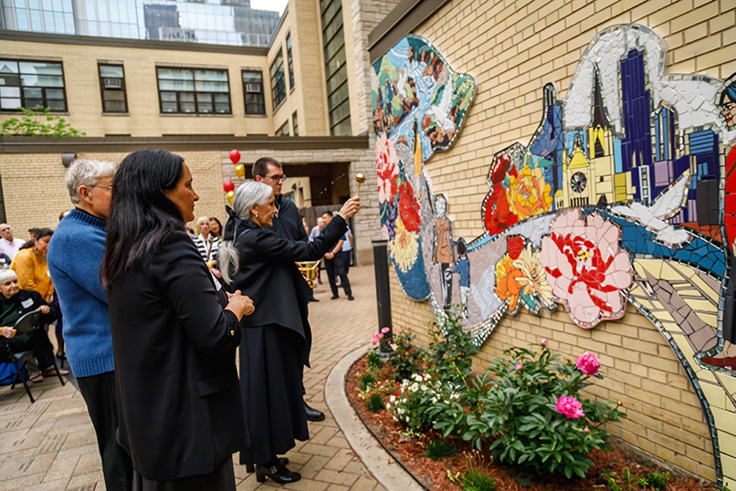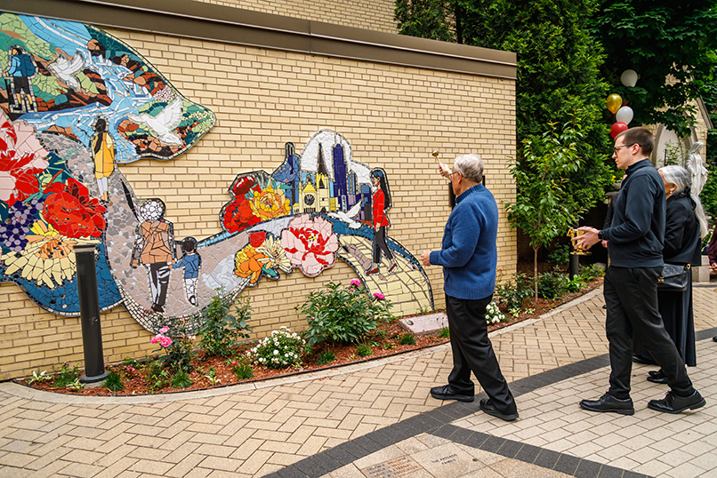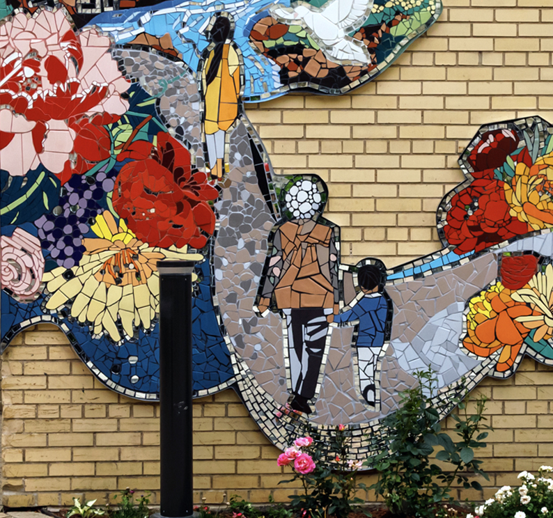 To celebrate the 175th Anniversary of Holy Name Cathedral Parish—founded on November 18, 1849—our Faith Community envisioned and brought to life a vibrant mosaic mural: A Pilgrim People of Hope. Nestled in the Cathedral’s Courtyard, this colorful work of art was installed in May 2025 and dedicated on May 31, 2025, inviting all who visit to pause and reflect.