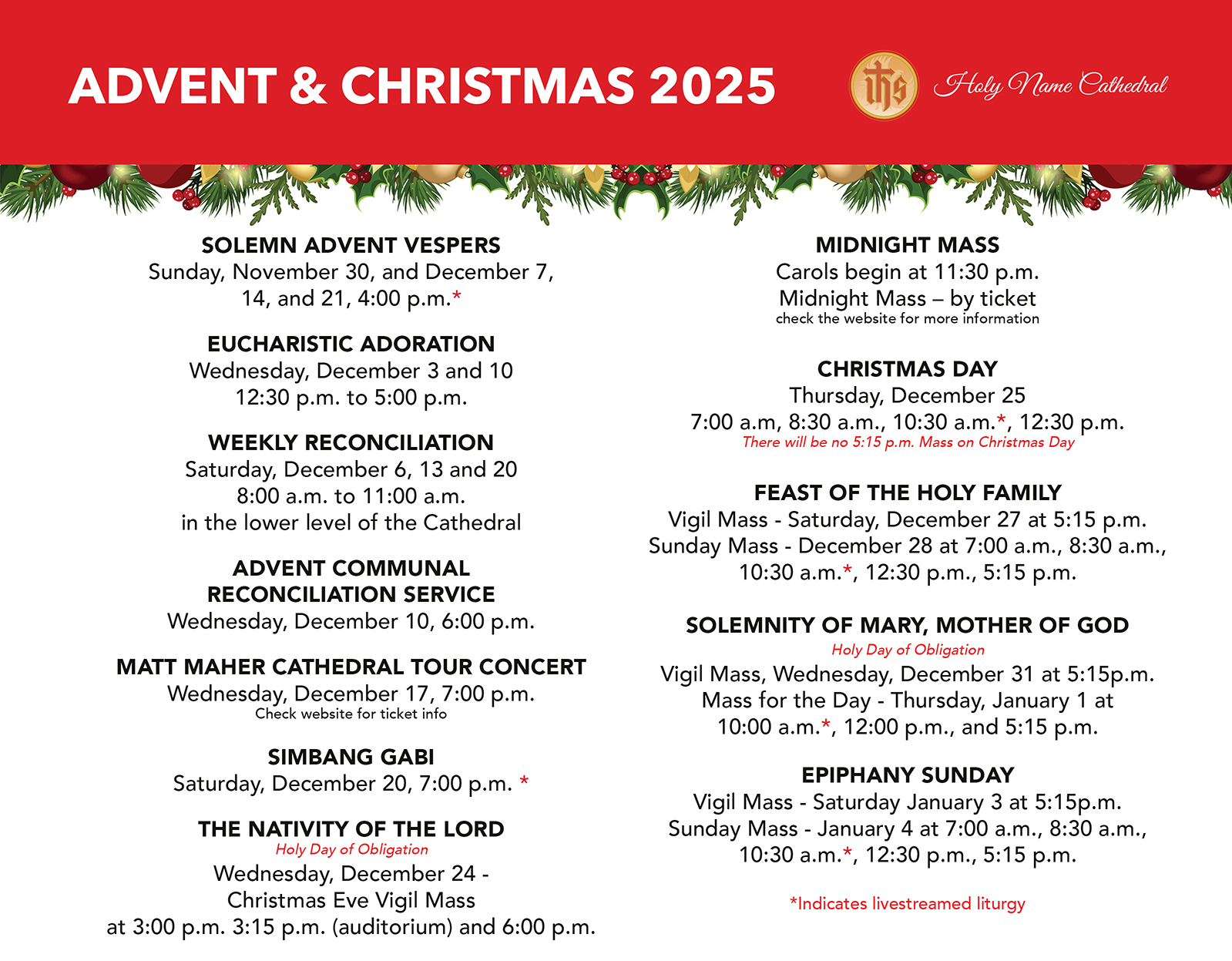 Advent and Christmas Schedule