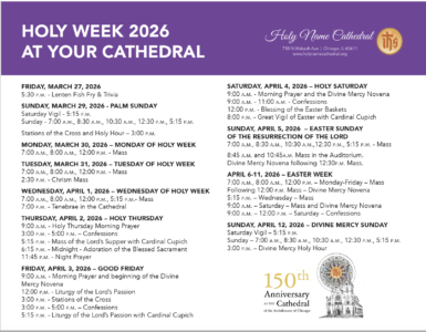 Our Lenten Schedule will be posted here during the week of January 26. Please come back to get all of the key dates, including our Ash Wednesday mass and services schedule.